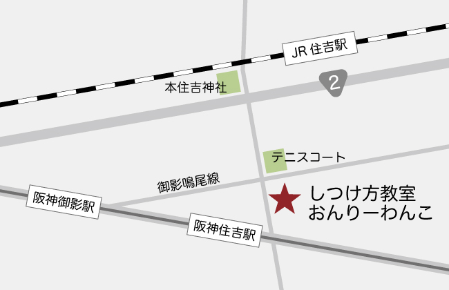しつけ方教室おんりーわんこ 神戸市東灘区住吉宮町2-14-12 電話:080-3130-5918 / 078-858-1456 阪神住吉駅から徒歩3分 JR住吉駅から徒歩6分 *専用駐車場はありません。市営駐車場かコインパーキングをご利用下さい。